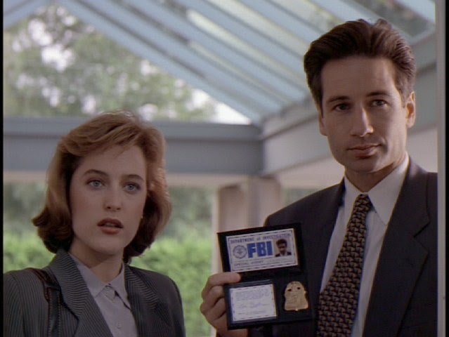 Hmmm... que carinha é essa do Mulder??? Que é que a Scully está fazendo?
